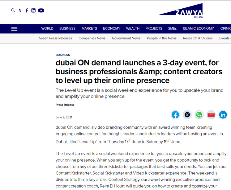 Media placements; Dubai One coverage
